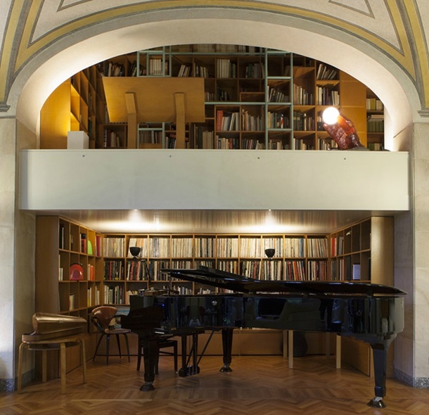 Бібліотека висотою дев’ять метрів проходить через усі три поверхи будинку міланського архітектора Маріо Белліні (Mario Bellini), який дуже любить книги. За величезним стелажем ховаються сходи. До потрібної полиці легко дістатися завдяки спеціальній добре продуманій системі лісів. До речі, метр живе у будинку XIX століття, реконструйованому відомим архітектором-раціоналістом П'єро Порталуппі (Piero Portaluppi).