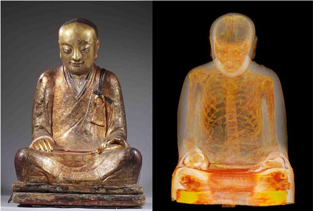 Голландські вчені з медичного центру Меандер всередині китайської статуї Будди виявили мумію віком близько тисячі років, повідомляє CNet. Вчені вважають мумію тілом померлого ченця.