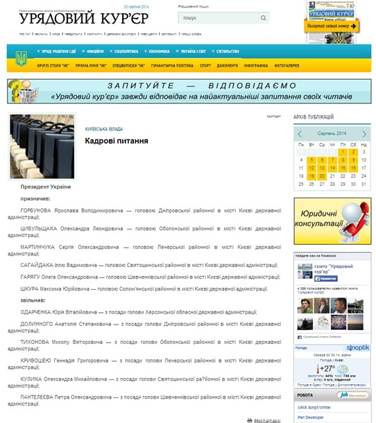 Як повідомляв Корреспондент.net, Одарченко був призначений на посаду губернатора Херсонської області 2 березня 2014 року. До цього він керував Херсонською та Київською міськими організаціями партії Батьківщина.