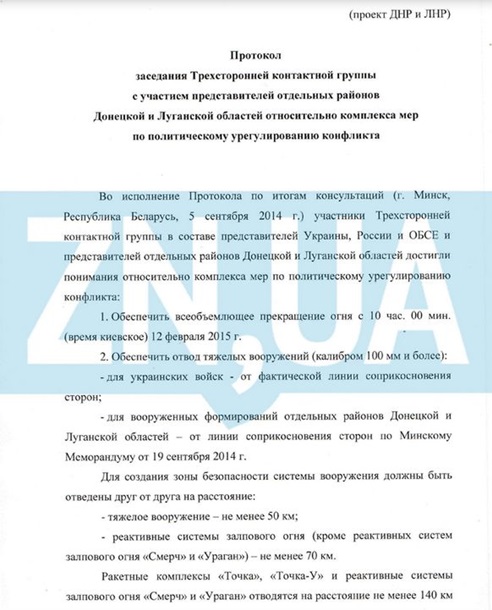 - Всеосяжне припинення вогню з 10.00 12 лютого 2015 року (за Києвом).