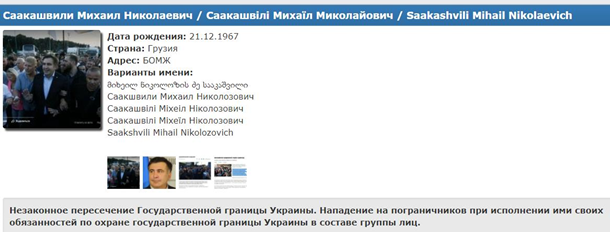 Екс-президент Грузії і колишній губернатор Одеської області Михайло Саакашвілі потрапив до бази даних сайту Миротворець після того, як прорвав оточення на польсько-українському кордоні разом зі своїми соратниками.