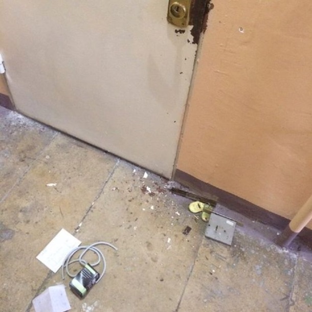 На дверях офісу видно сліди злому. Фото - Amnesty International