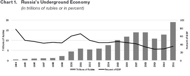 Показники тіньової економіки РФ (дані: GFI)