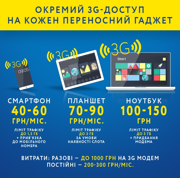 Якщо це взагалі можна назвати задоволенням. Напевно, передбачалося, що на радощах від настання ери 3G ми не помітимо «ломових» тарифів і радісно кинемося спускати сотні гривень на місяць на оснащення своїх гаджетів швидкісним інтернетом.