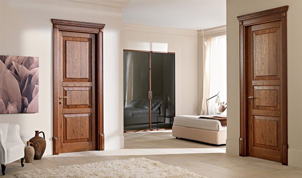 Двері з цінних порід деревини. Тут висока ціна повністю виправдовує якість: естетичність, довговічність, максимальна звуко- і теплоізоляція. Зверху полотна з масиву покриваються лаком, тому такі двері залишаються привабливими довгі роки.