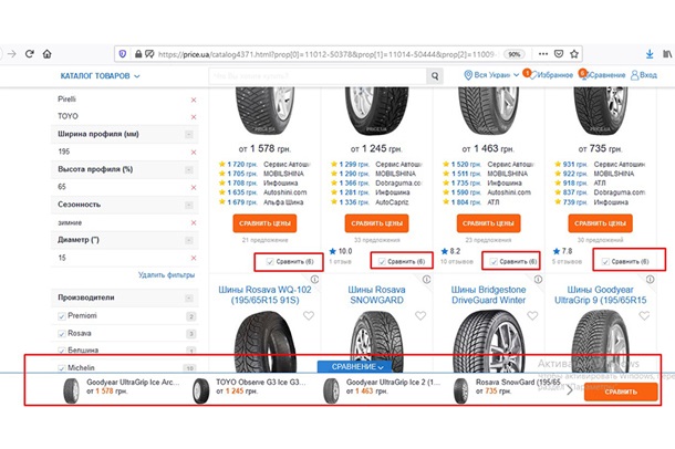 По-справжньому зекономити на покупці зимової гуми для авто можливо, якщо використовувати велику базу Price.ua. Оскільки тут охоплення практично всього ринку автошин: вам не треба розглядати окремо сотні магазинів. Ви просто відмічаєте потрібні фільтри на сайті та порівнюваєте отримані варіанти, обираючи для себе найкращий,вигідний. Як? Ось алгоритм.