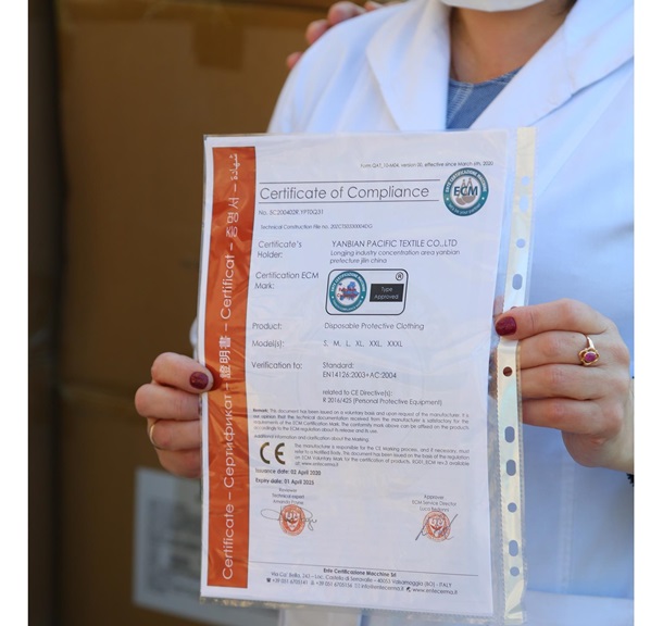 Медичний захисний одяг, який компанія “Епіцентр” передала київським лікарням, забезпечує першу ступінь захисту і складається з трьох шарів матеріалу з поєднанням поліпропілену, поліетилену медичного призначення з проклеєними швами. Костюми стійкі до проникнення біологічного забруднення, в тому числі, вірусів та бактерій, та мають сертифікати, які підтверджують відповідність українським та європейським стандартам.