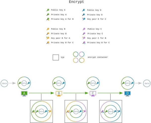 Наступна діаграма наочно демонструє весь процес багаторівневого шифрування повідомлень.
