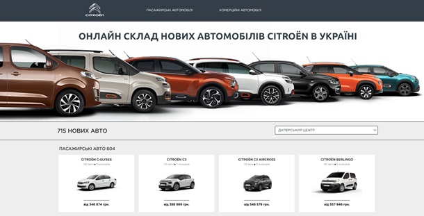 Бренд CITROЁN запустив новий зручний склад автомобілів, який виконаний в стилі онлайн магазину.