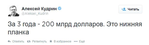 "Запит Роснефти в уряду 1,5 трлн рублів (42 млрд доларів) підтверджує мій прогноз втрат Росії від санкцій. За три роки - 200 млрд доларів. Це нижня планка", - написав він у Twitter.