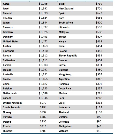 Нижче України за цим показником лише В'єтнам, Колумбія, Індія, Румунія, Індонезія та Перу.