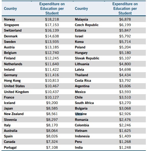 Важливим фактором такої низької позиції України в рейтингу став низький рівень витрат на освіту, зокрема, на підготовку дипломованих фахівців: 2,926 тисяч доларів.