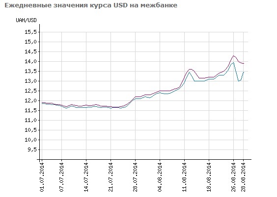Водночас прем'єр-міністр Арсеній Яценюк обіцяє, що курс долара буде не більш 12 гривень після стабілізації на Донбасі і другого траншу Міжнародного валютного фонду, рішення щодо якого буде прийняте у п'ятницю, 29 серпня.