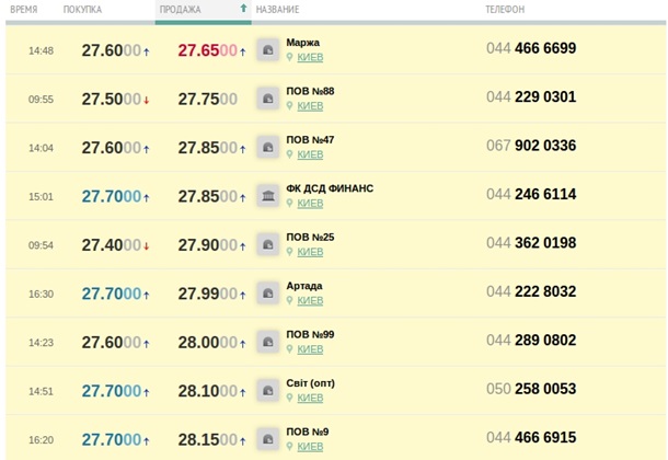 В обмінних пунктах Києва 30 грудня долар подорожчав до 28,15 гривень у продажу і до 27,6 у покупці.