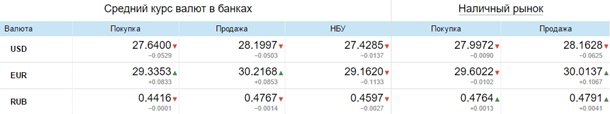 Курс покупки євровалюти знизився на 1 коп., а продажу на 4 коп. - до 29,18-29,22 грн. Курс покупки і продажу рубля на момент закриття міжбанку склав 0,457-0,459 грн.