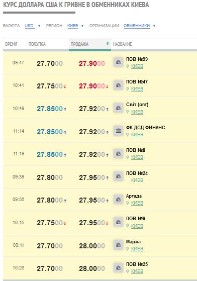 Якщо в банках у порівнянні з вчорашнім днем ситуація значно не змінилася, то в обмінних пунктах долар знову подорожчав до 27,85 грн в купівлі і 28 грн в продажу. Також гривня трохи подешевшала на міжбанку до всіх основних валют.