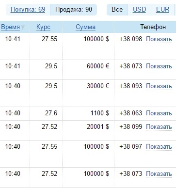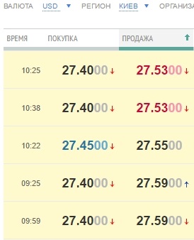 Курс долара в обмінниках 8.02.2017 (finance.ua)