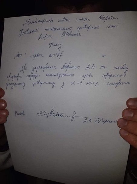 Ректор Київського національного університету імені Тараса Шевченка Леонід Губерський скасував наказ про призначення колишнього заступника голови Адміністрації президента часів Віктора Януковича, юриста Андрія Портнова на посаду викладача на кафедрі конституційного права юридичного факультету.