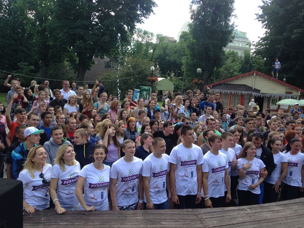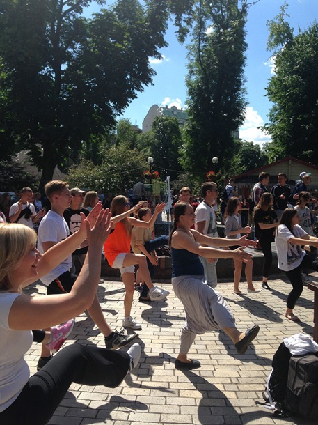 Протягом 20 хвилин під керівництвом інструкторів під сучасну музику учасники «Руханки» робили зарядку, яка складалася з трьох блоків з наростаючим навантаженням.