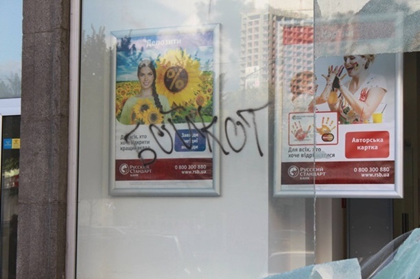 У банку розбили вітрини і написали слово "Бойкот".