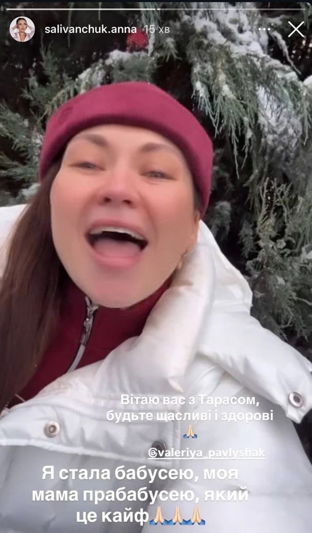 У сториз в Instagram Саліванчук тепло привітала племінницю з народженням первістка, побажала малюкові щасливого життя та підтримала молоду маму.