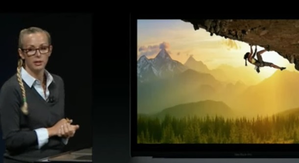 20:51 Філ Шиллер продовжує презентувати новий MacBook Pro. Він розповідає про екран ноутбука. Він на 67% яскравіше і контрастніше і на 25% більше кольорів відображає. При цьому він споживає менше енергії.
