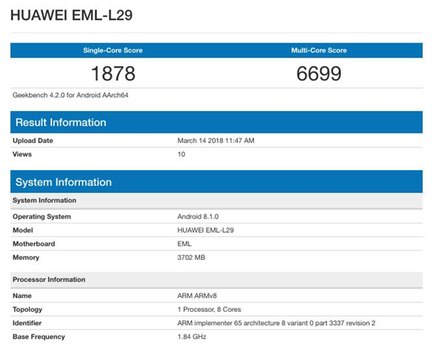 У Мережі були опубліковані результати тестування нового флагманського смартфона Huawei P20 на бенчмарке Geekbench. Судячи з попередньої інформації, гадежт буде оснащений обсягом оперативної пам'яті від 4 до 6 ГБ, а також процесором Kirin 970. Про це пише Gizmochina.