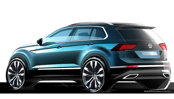 Компанія Volkswagen опублікувала перші дизайн-скетчі оновленого кросовера Tiguan. Публічна презентація автомобіля відбудеться на Франкфуртському автосалоні, пише СarsСoops.