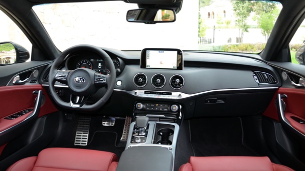 Якщо нікуди не поспішаєш, Stinger - немов на котячих лапах. 8-ступінчастий автомат ZF перемикається зовсім непомітно, реакції педалі газу приємно заокруглені. Але, буквально, пара спритних розгонів, і машина змінюється на очах: амортизатори затискаються, коробка перемикається пізніше, а педалем газу, здається, тепер можна порізатися. І навіть я ще не включав режим Sport+. Тому бортовий комп'ютер показує мені середню витрату всього 12,4 л на сотню.