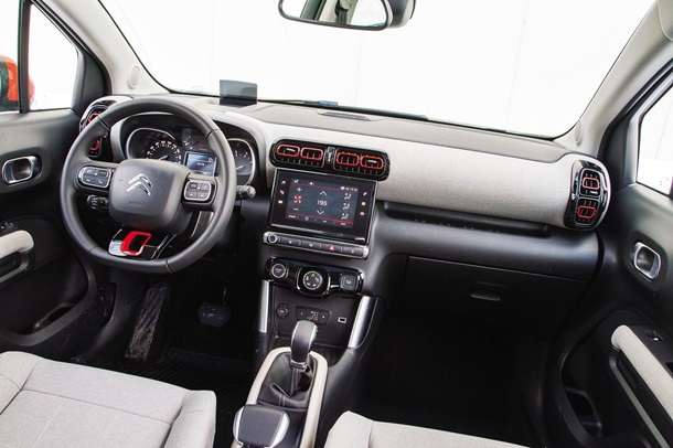 У салоні кросовера відмінностей від хетча С3 не так багато, але вони є, причому помітні. Приладова панель замість пластикової окантовки по периметру хизується тканинною обробкою, що робить салон набагато затишнішим. Біля дверей немає вельми екстраординарних, «чемоданних» ручок - цього разу французи воліли більш традиційну їхню форму. «Дивані» з вигляду сидіння тут практично такі ж, як в хетчі і, мабуть, настільки ж гарні. Той нечастий випадок, коли дизайнерські вишукування не йдуть врозріз зі зручністю. Подивишся на широкі плоскі спинки передніх крісел - і засумніваєшся, чи зручно буде спині. Та тільки-но приземлишся в них, і сумніви зникають відразу ж. Таки зручно! А обробка? Сьогодні французи роблять чи не найкращу тканинну оббивку, надзвичайно милу на вигляд і приємну на дотик - такий собі антипод грубуватої тканини німецьких машин. Хоча підозрюю, що вичистити розкришене юним сином шоколадне печиво з «пор» цього симпатичного матеріалу буде не так-то просто.