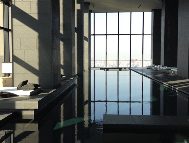 Заспокійливий готель Aman в стилі модерн підноситься над мегаполісом на висоті 38 поверхів. У ясний день можна з вікна побачити гору Фудзі.