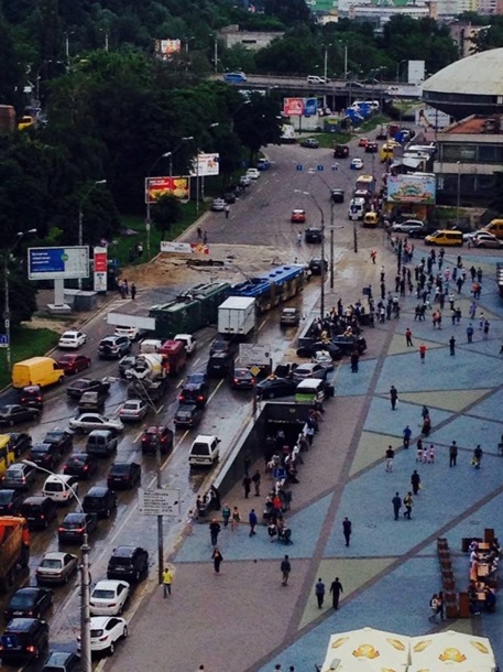 На Либідській площі утворився великий провал і утворився автомобільний затор.