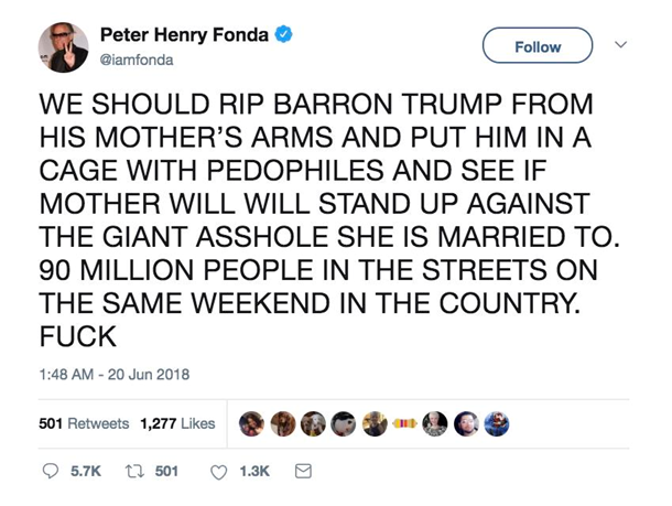 "Я сьогодні твітнув щось вкрай недоречне і вульгарне щодо президента і його сім'ї у відповідь на жахливі речі, які я бачив по телевізору. Як і багато американців, я дуже обурений і розгублений щодо ситуації з дітьми, яких відокремлюють від батьків на кордоні, але я зайшов занадто далеко", - заявив Фонда.