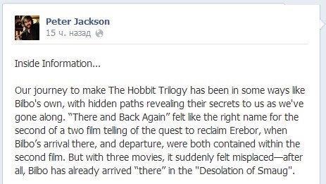 Пітер Джексон придумав нове ім'я останньої, третьої частини саги.