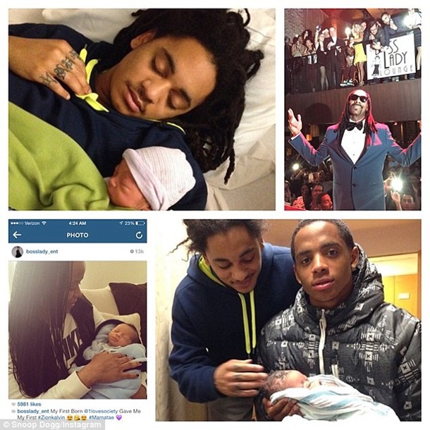 На своїй сторінці в мікроблозі Snoop Dogg розмістив відео і кілька фото і підписав: "Гордий дідусь. Мій син представив онука Зайона. Господь благословляє".