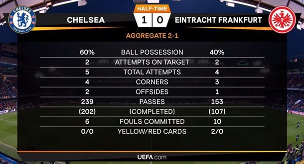 Челсі попереду, і зовсім не видно, яким чином Айнтрахт може перевернути гру.