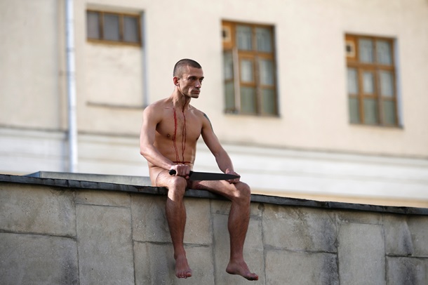 Павленский на очах у десятка очевидців взяв величезний ніж в руки і відрізав собі мочку вуха