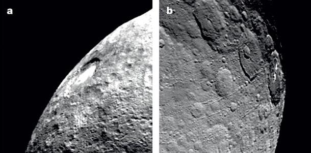 Димка над поверхнею Церери (ліворуч)
