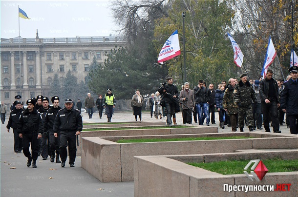 У Миколаєві під час маршу на честь відзначення Дня російської єдності активісти ВО Свобода закидали учасників заходу від Російського блоку димовими шашками. Зіткнення відбулися вчора, 3 листопада, на перехресті вулиць Радянська і Адміральська.