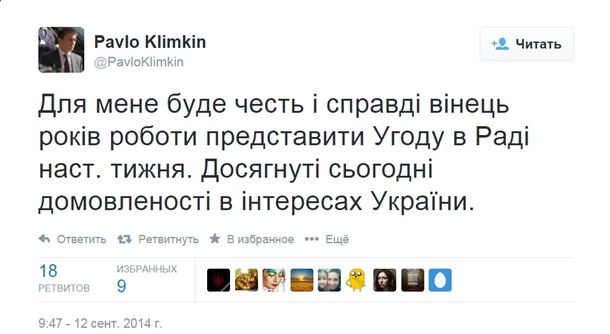 Як повідомляв Корреспондент.net, 16 вересня Україна має намір синхронно з ЄС ратифікувати Угоду про асоціацію.