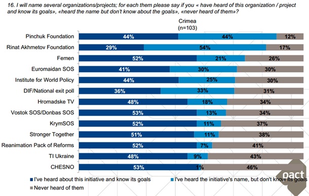 Біженці з південного сходу найкраще поінформовані про певні громадські організації, у той час як у кримчан найнижчий рівень обізнаності.