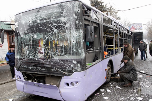 8:30 У Донецьку снаряд влучив у зупинку в Ленінському районі. Був обстріляний тролейбус, який перебував на зупинці. У цій трагедії загинули щонайменше восьмеро осіб.