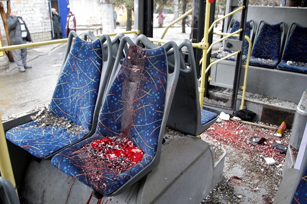 Донецьк, 20.01.2015, місце загибелі людей на зупинці/ Manu Brabo, AP