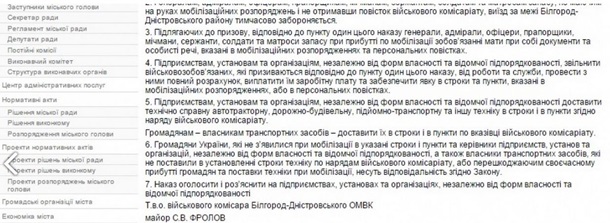 "Сам наказ я не бачив, розберуся. Але воєнкома підтримую. Якщо він бачить, що люди виїжджають з Білгорода-Дністровського, то як йому вчинити?", - прокоментував наказ Піскун.