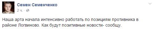 Ззаначимо, раніше нардеп Семен Семенченко повідомив, що українська артилерія почала працювати по позиціях сепаратистів в районі Логвинового, за яке цілий день тривали бої.