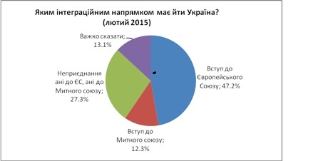 Зокрема, опитані вважають, що Україна повинна розвиватися незалежно, не входячи ні в одне з цих об'єднань.