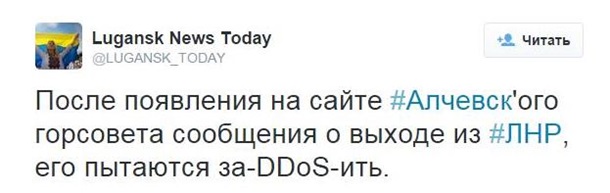 "Після появи на сайті Алчевської міськради повідомлення про вихід з ЛНР, його намагаються за-DDoS-ити", - повідомляє видання.