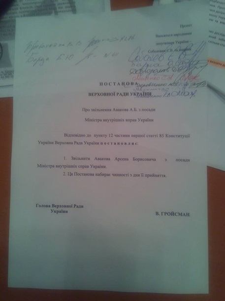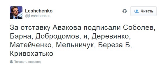 "Комітет по боротьбі з корупцією ВР ініціював відставку Авакова з посади міністра МВС. Тільки що зібрали підписи прямо на засіданні. 9 "за", - написав Лещенко у своєму Twitter.