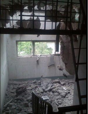 14:30 В селищі Абакумова, яке межує з Мар'їнкою у районі Донецька, снаряд потрапив в житловий будинок.
