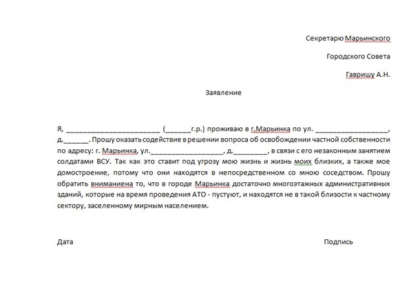 Усі дві заяви потрібно складати в Мар'їнській міській раді. Приклади заяв опубліковані в соцмережі ВКонтакте в групі "Мар'їнка 24".